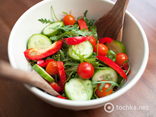 В небольшой емкости взбей мед, лимонный сок и оливковое масло; приправь солью и перцем. Влей полученную заправку в салат, тщательно перемешай.