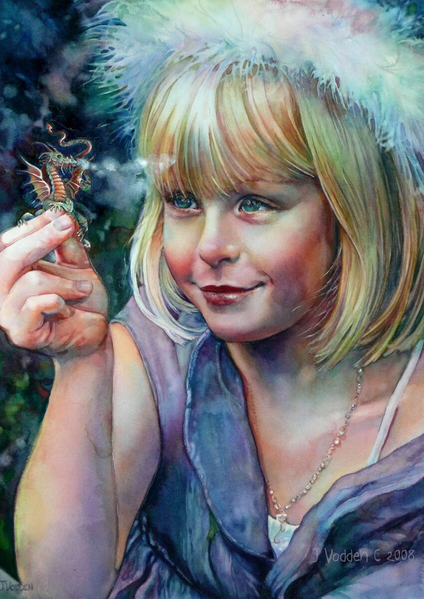 Помимо классических портретов Дженни пишет множество фантазийных работ, где придумывает разные истории про феечек, эльфов и драконов.