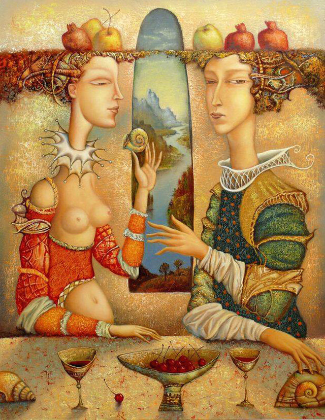 В творчестве российского художника Александра Сулимова гармонично сочетаются романтика, гротеск и декоративное начало. Его картины в равной мере вдохновлены как народным лубком, так и западно-европейским маньеризмом XVI-XVII веков, в них чувствуется влияние ар-нуво и позднего модернизма. В сегодняшней подборке мы коснемся только одной грани творчества Александра Сулимова − его живописных работ на тему женской красоты. Эти произведения выполнены в технике масла на холсте, с использованием авторских приемов работы с фактурой.